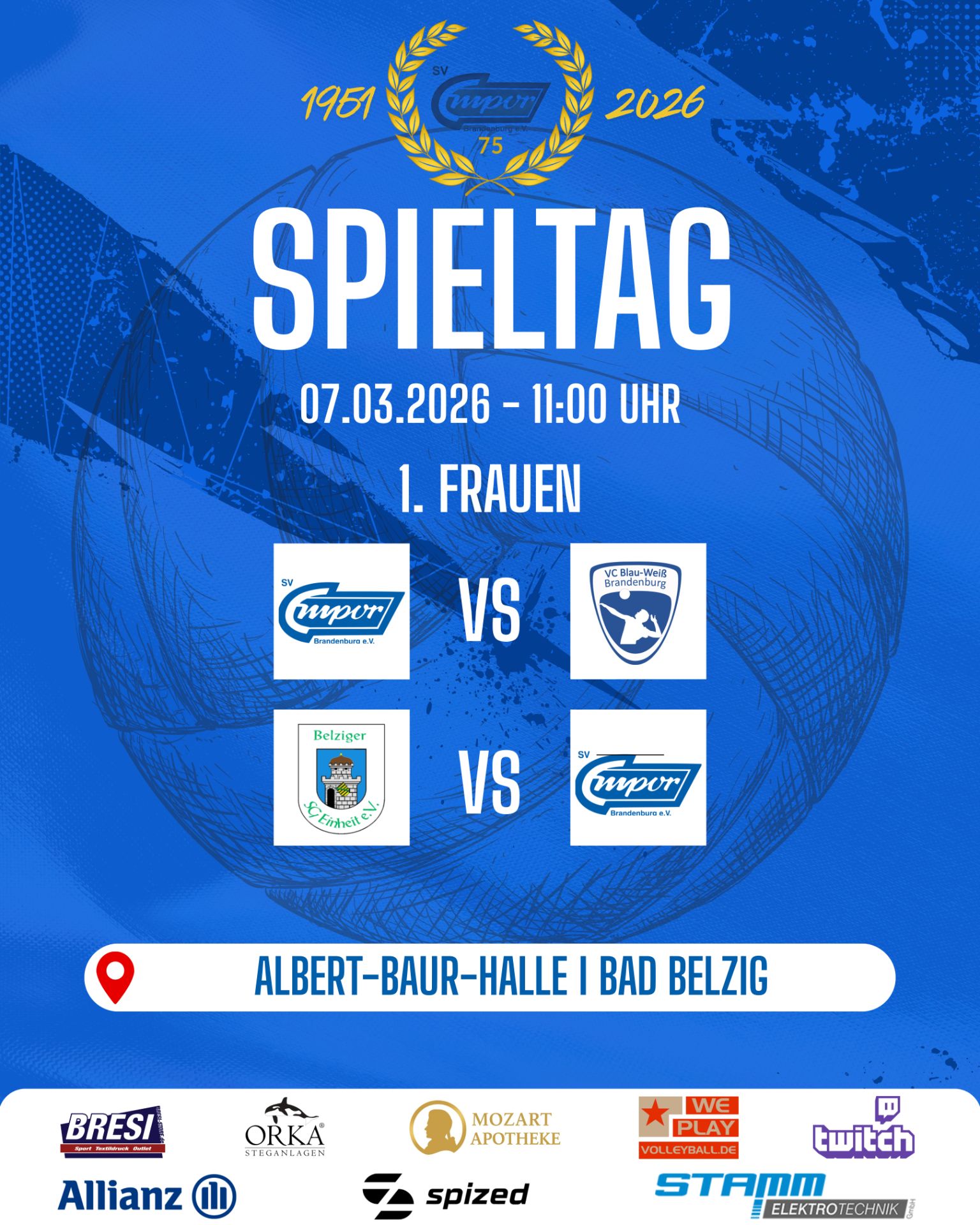 Dort trifft sie auf die Damen vom VC Blau Weiß Brandenburg sowie auf den Gastgeber und aktuellen Tabellenzweiten, die Belziger SG Einheit. 💥